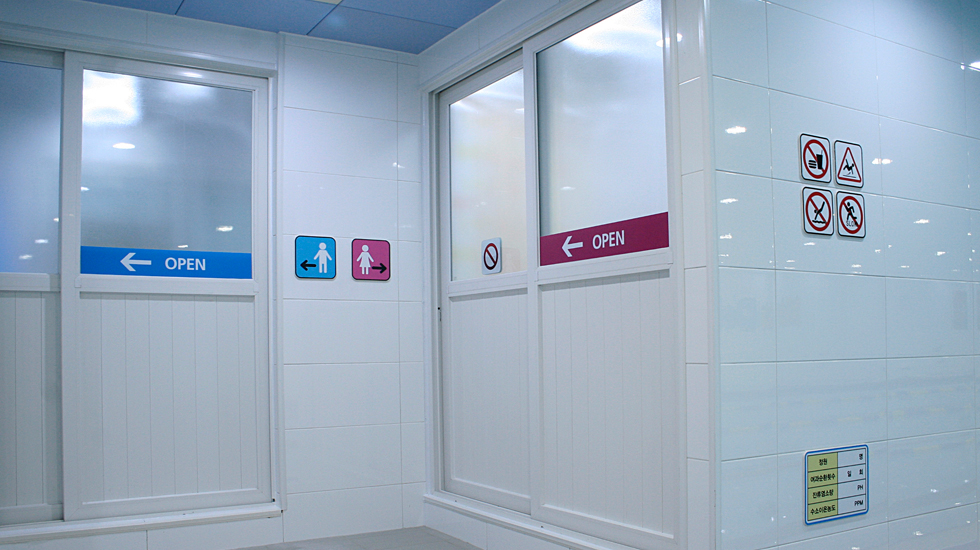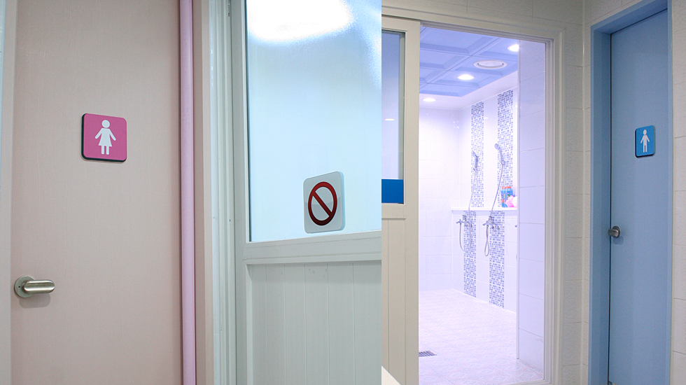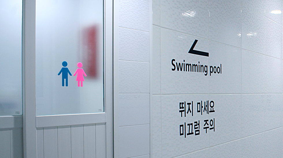 수영장 내부 사인 남여 샤워실로 들어가는 입구입니다